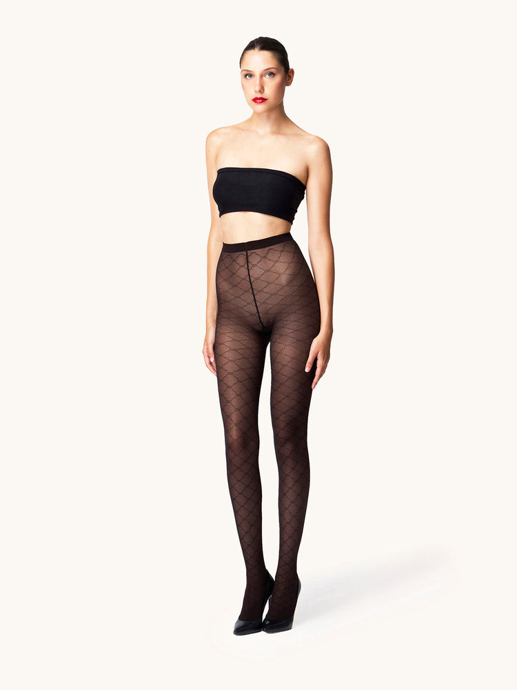 These net effect tights cover the legs with a delicate jacquard pattern and a soft, knitted-in waistband for a comfortable, secure fit. The sustainably dyed material has a sophisticated, matt finish.
