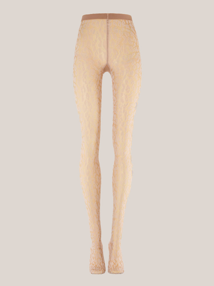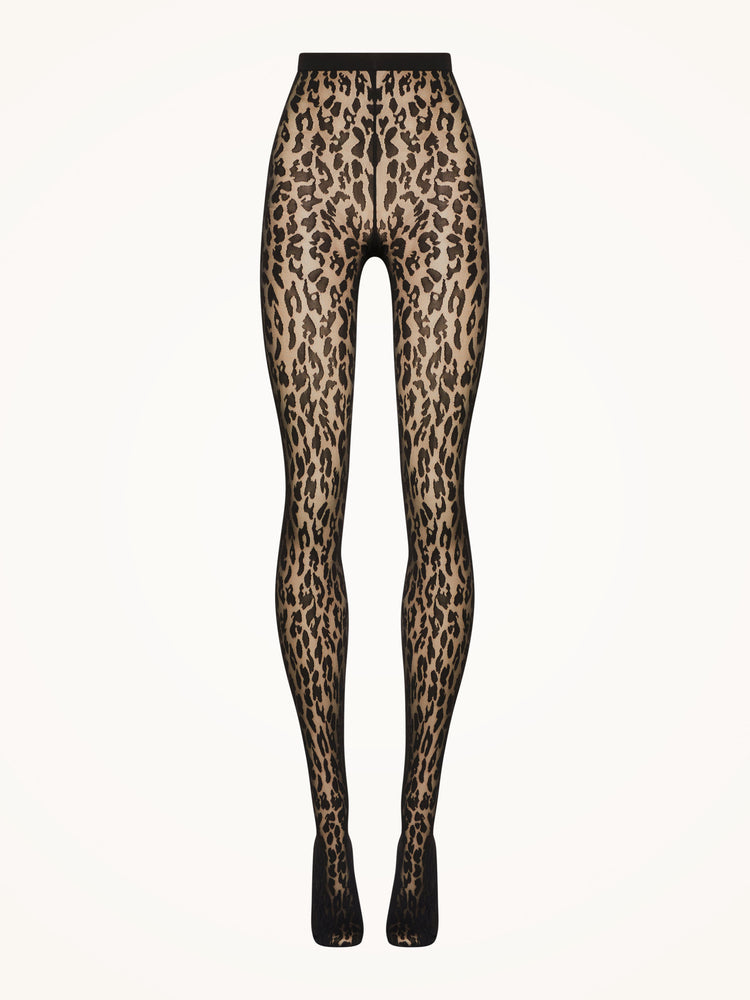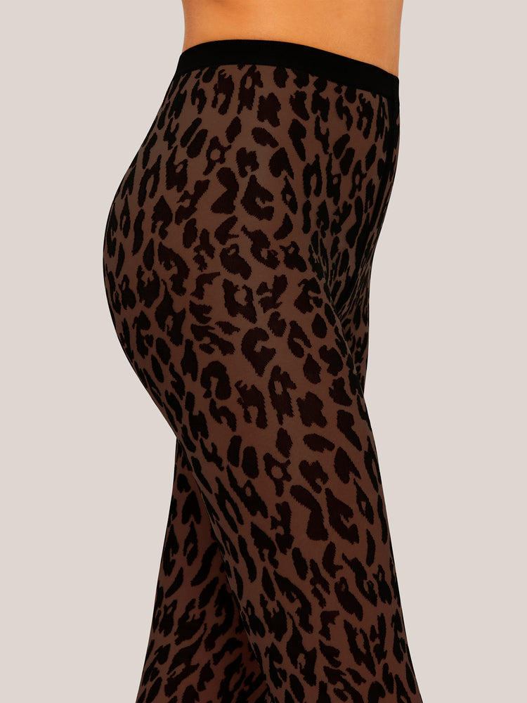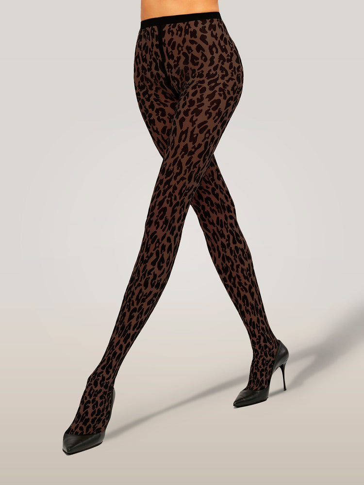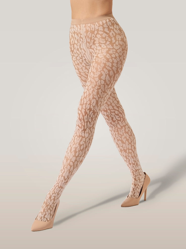 These tights feature a sheer-opaque construction with an eye-catching animal-inspired pattern, adorned with opaque spots on a sheer base. The knitted-in waistband ensures a perfect, comfortable fit that moves with you.