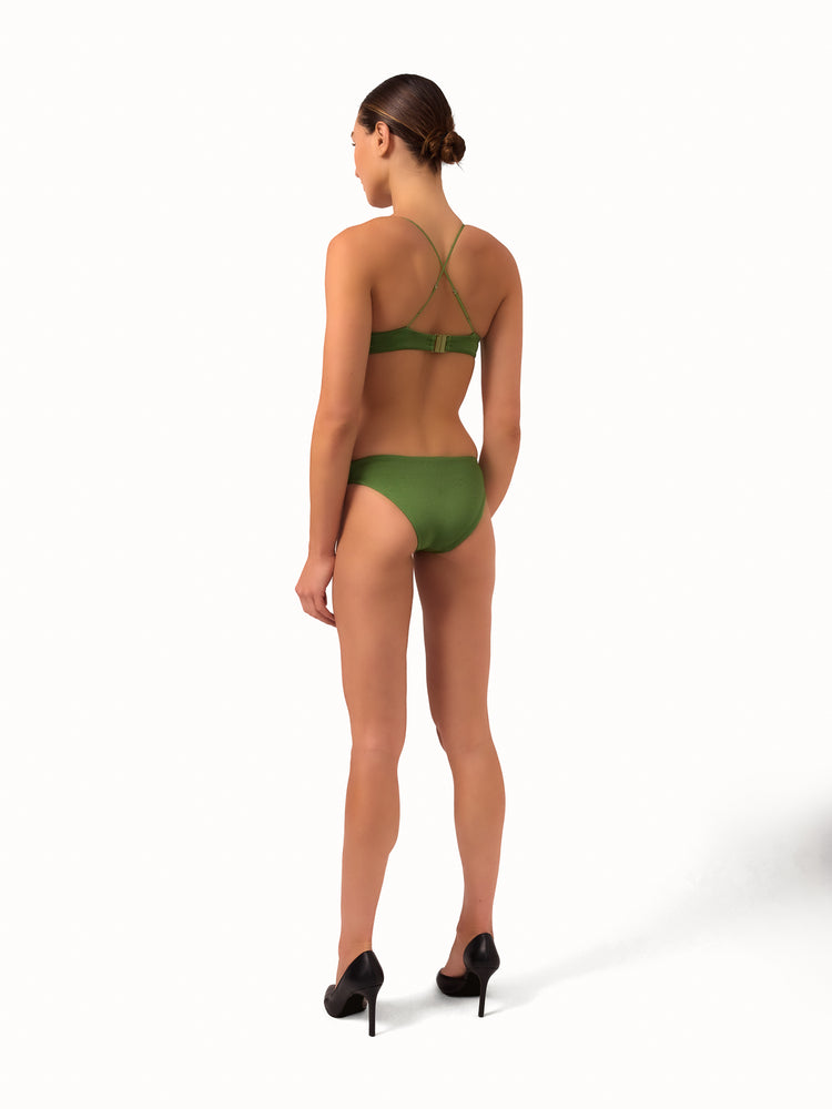 Crafted from premium Italian microfiber with a subtle shimmer, this bikini bottom offers a cheeky back coverage that hugs your curves beautifully for a flattering and alluring fit.