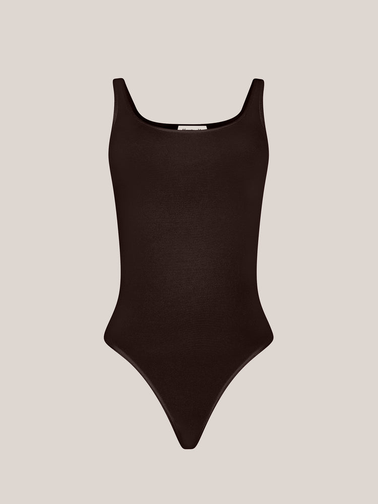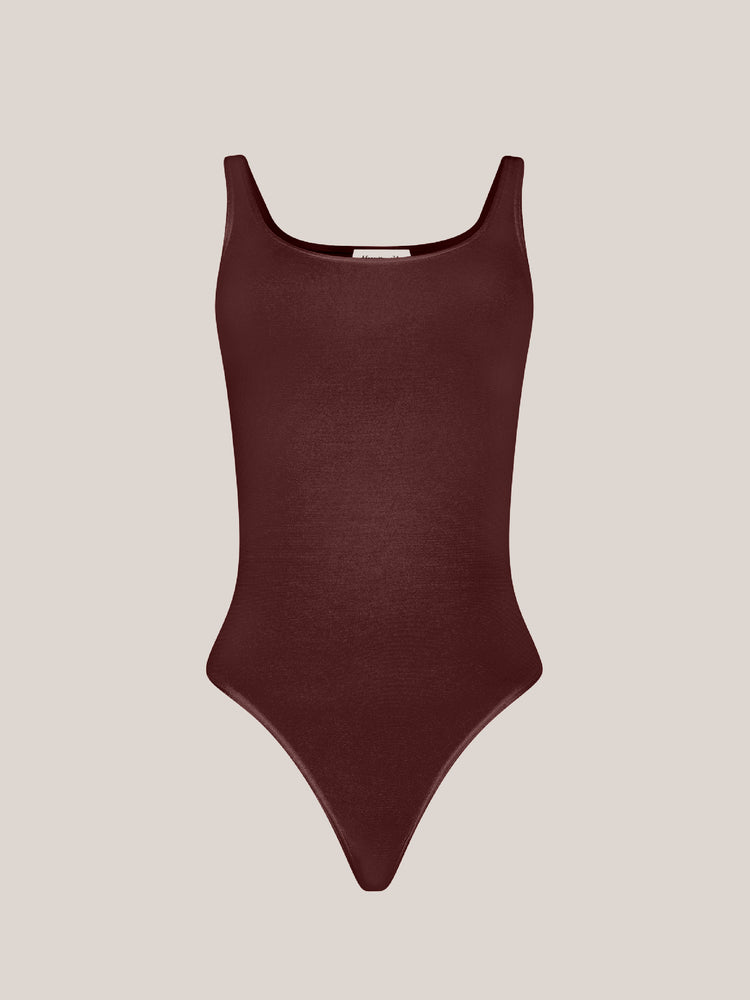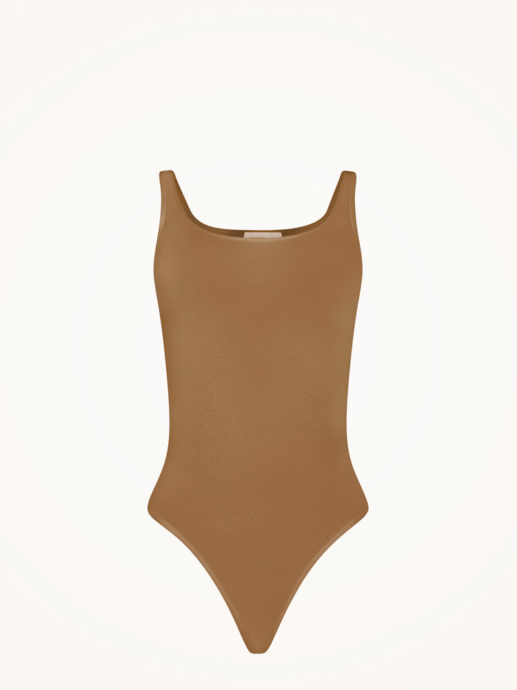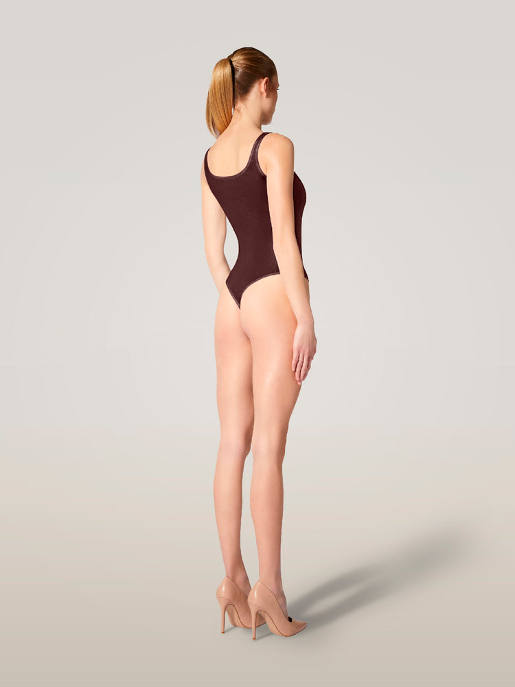 This bodysuit features a slim, seamless fit with a sophisticated scoop neckline and sleeveless design. The interior is a soft cotton blend for comfort, while the exterior has a beautiful shiny finish. The neckline and armholes are reinforced for a perfect, lasting shape.