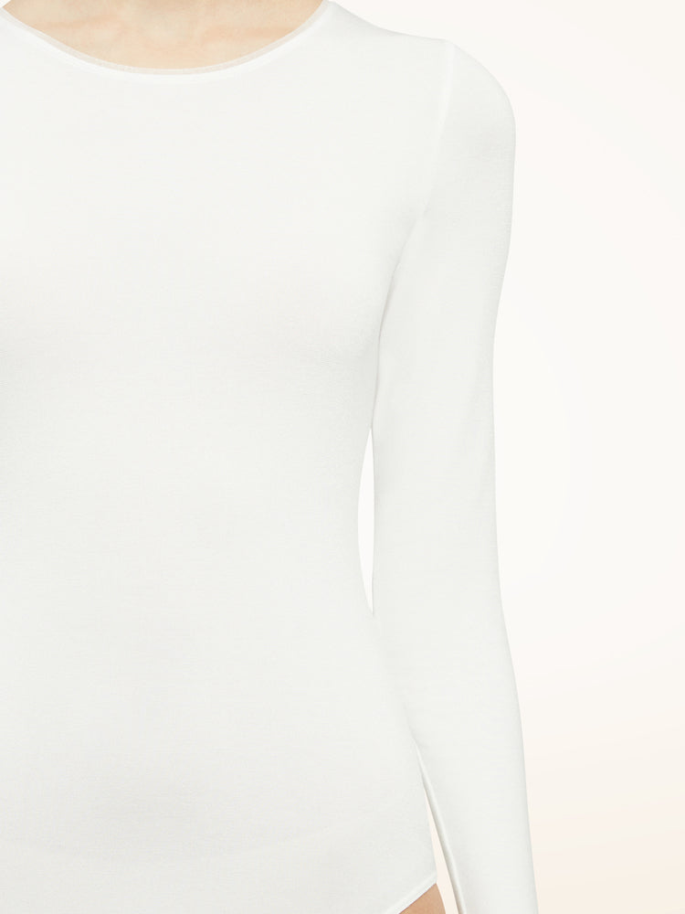 The slim fit and seamless construction create a beautifully smooth silhouette, while the soft cotton blend interior ensures all-day comfort. The sophisticated crew neckline is subtly reinforced for a perfect, lasting shape.