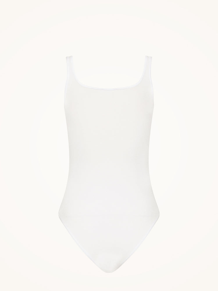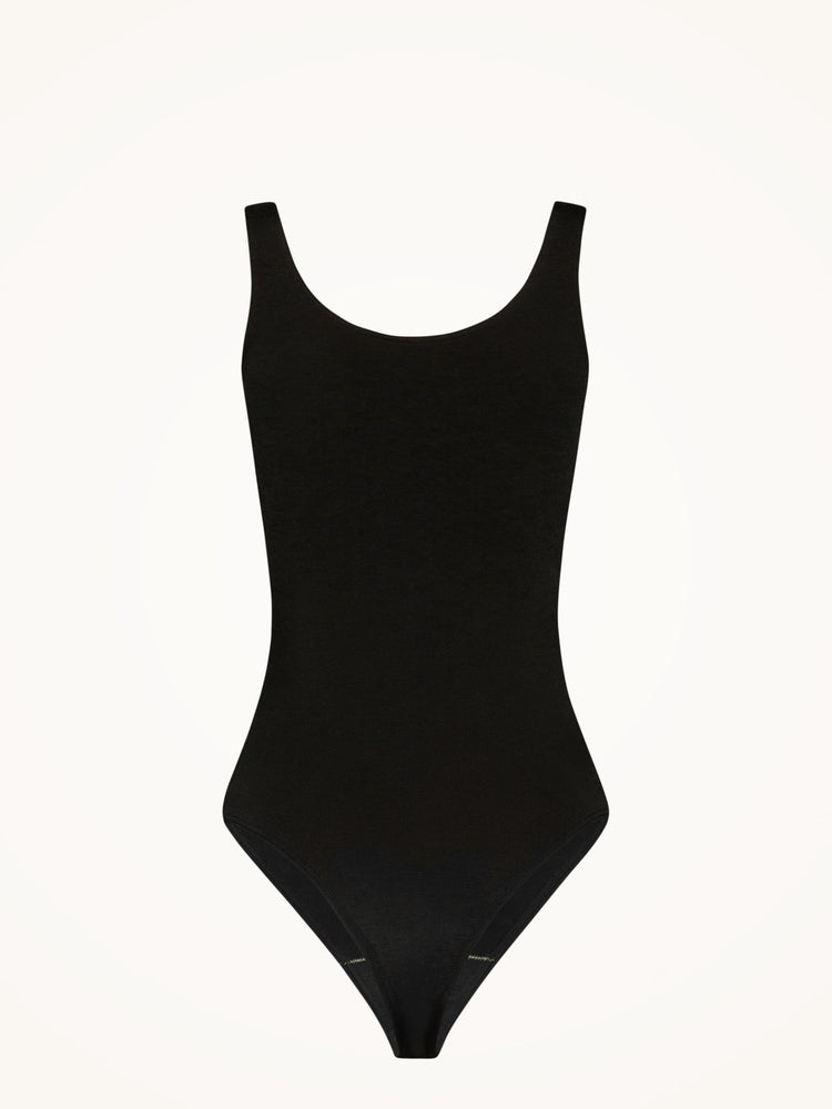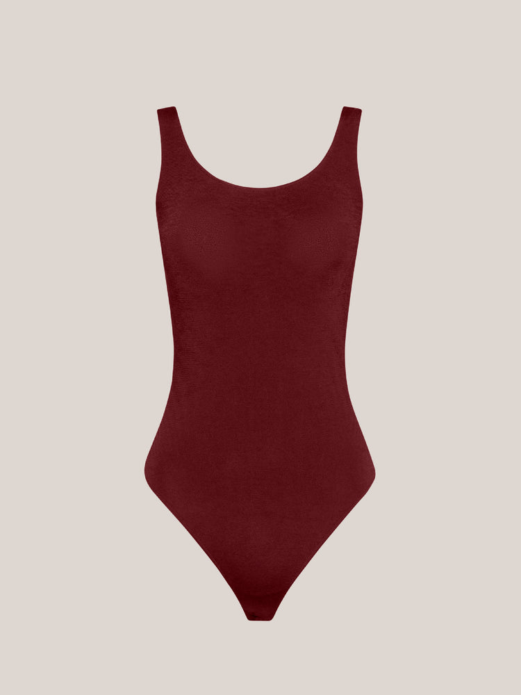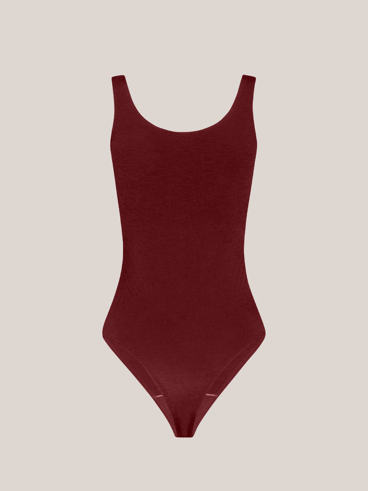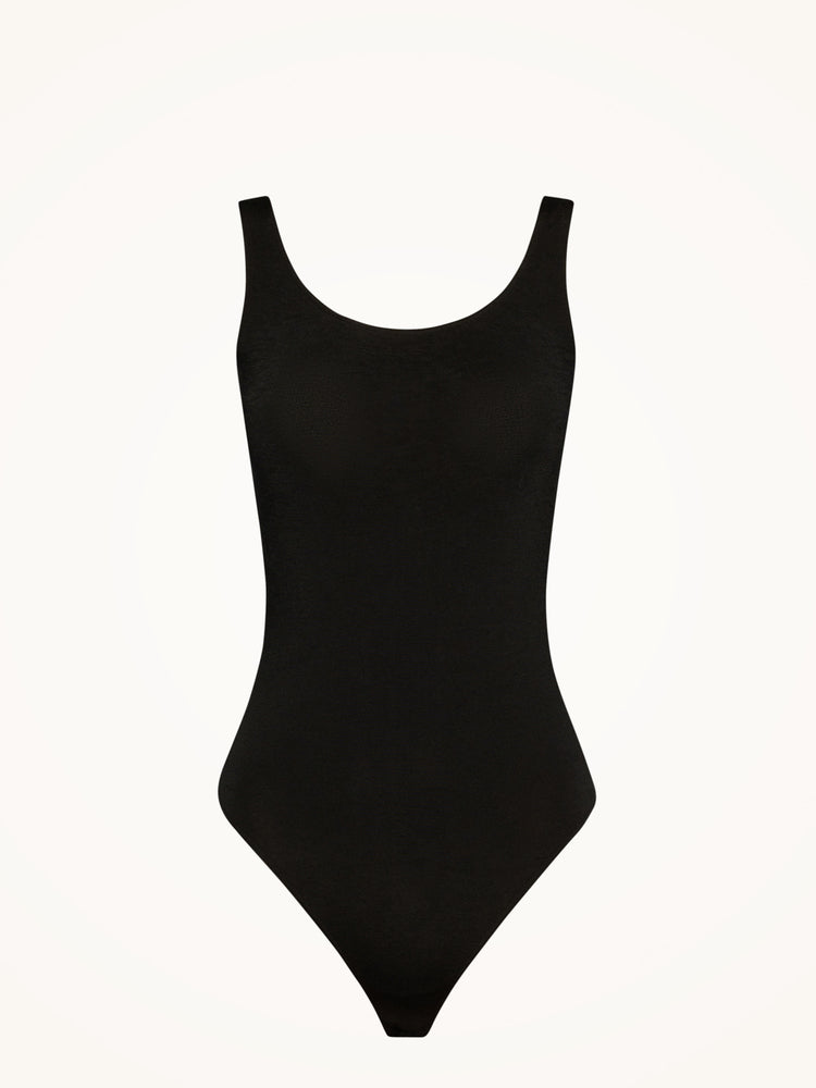 This sleeveless bodysuit is crafted from a seamless, opaque knit with a delicate sheen and a soft cotton underside for comfort. It features a flattering scoop neckline, a sleek Brazilian cut, and a fit that feels like a second skin.
