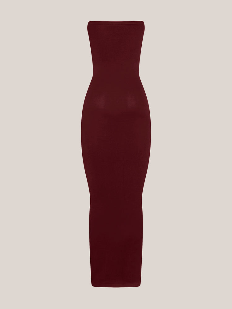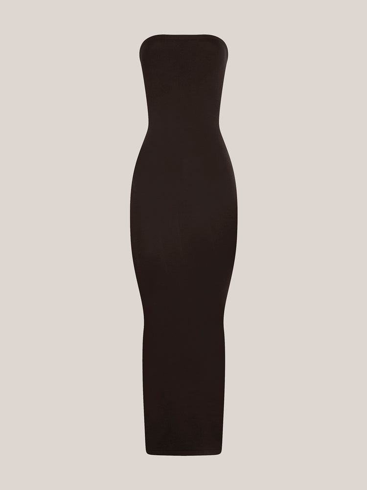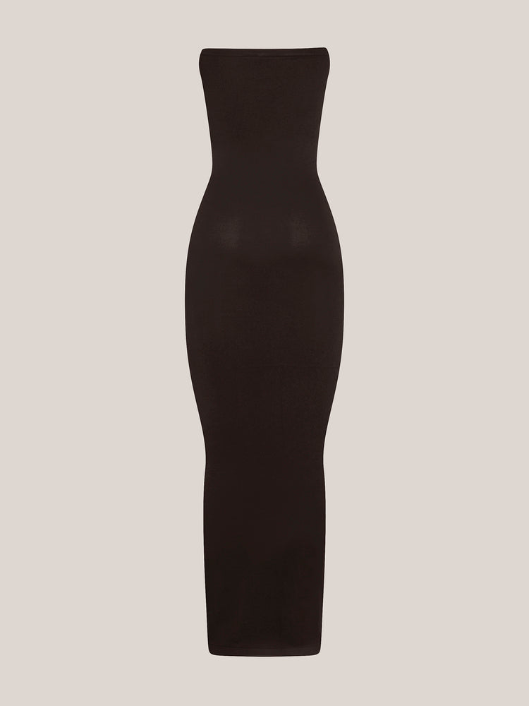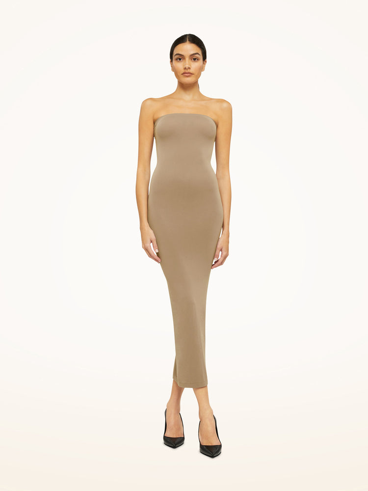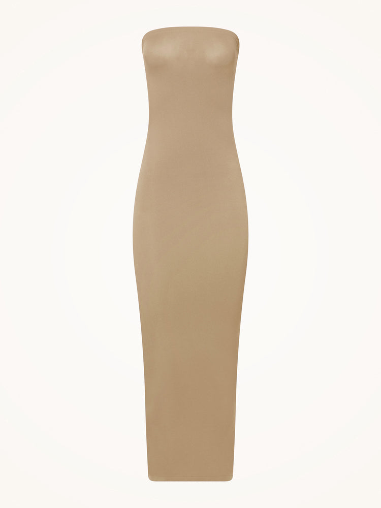 This soft, matte velvet dress features a seamless, slim fit that hugs your curves. It is crafted from a circular knit incorporating recycled materials for a touch of conscious luxury.