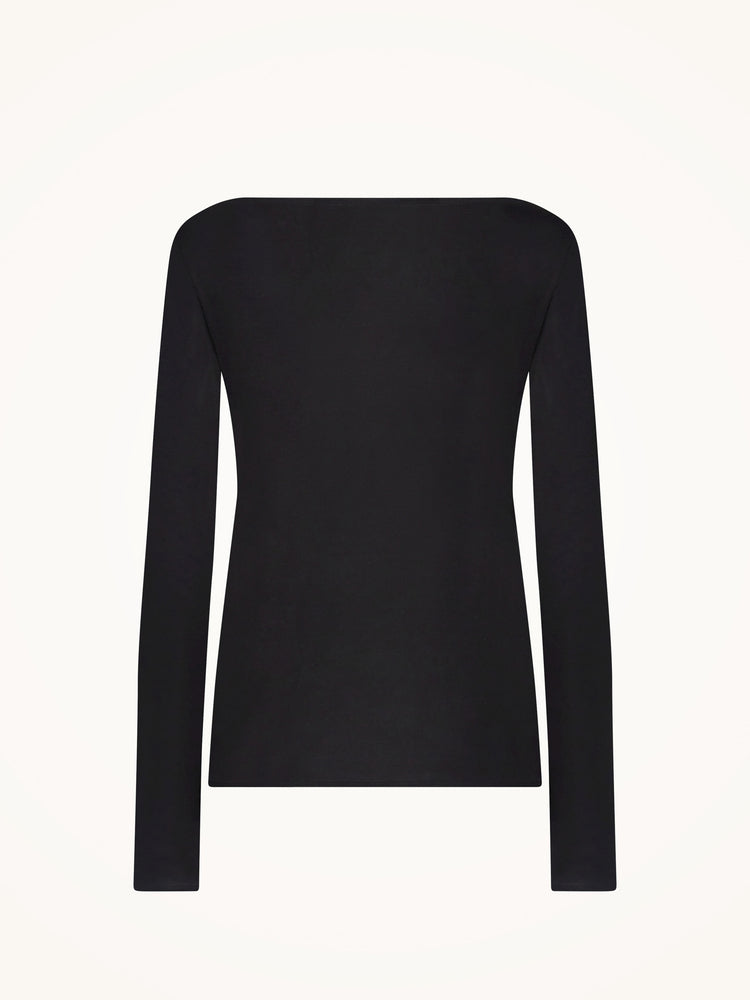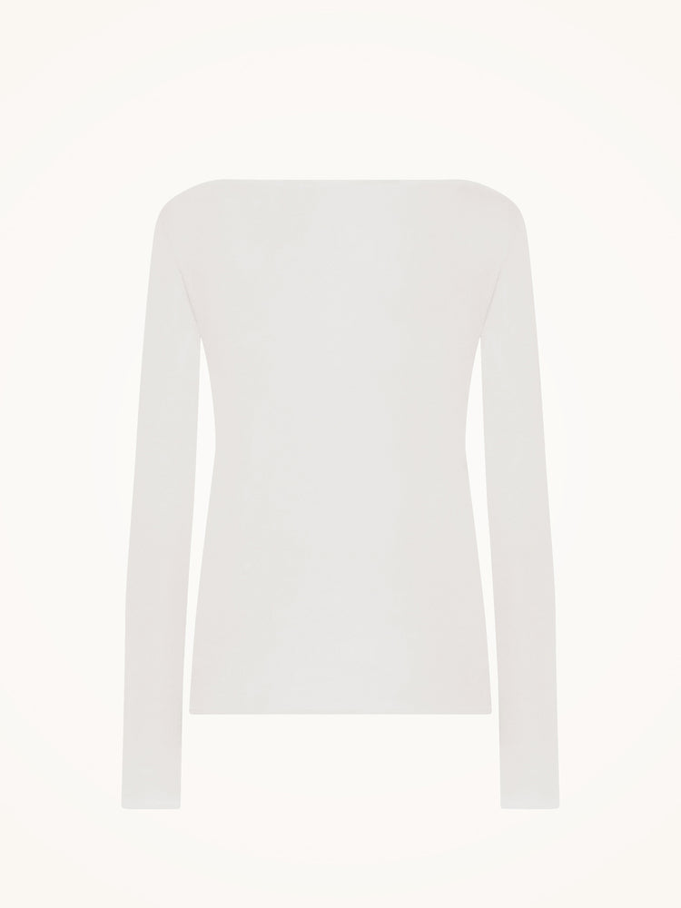 This essential top features a soft boat neckline and hems reinforced with gentle elastic tape for a flattering regular fit, all crafted from a luxuriously soft modal and elastane jersey blend.